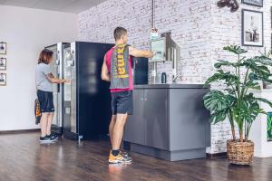 Während dem Training bleibst du hydriert durch Mineralgetränken aus unserer Zapfanlage und nach dem Training gehst du zum regenerativen Schwitzen in unsere Sauna oder du machst ein paar Lockerungsübungen an der Power Plate.